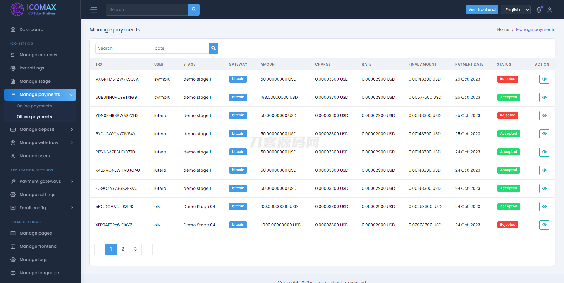 ICOMAX Token Sale & Auction Platform 是一款功能强大的数字资产交易平台,为用户提供了安全、高效的交易环境。该平台基于最新的 Laravel 8.x 框架开发,具有易于安装、多语言支持、在线/离线支付网关、KYC、电子邮件和短信验证等特色功能。此外,ICOMAX 还支持多种支付网关,包括 Razorpay、Coinpayment、Mollie Payment、NowPayments、PayStack、Flutterwave 等。用户可以使用法定货币和多种加密货币进行阶段性销售,并享受拍卖和聊天等功能。无论是个人用户还是企业机构,ICOMAX 都能满足其数字资产交易的需求。